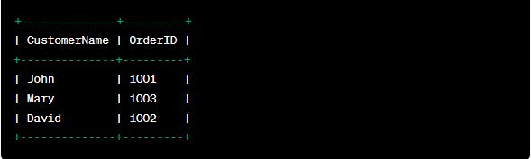 The subquery (SELECT CustomerID FROM Customers WHERE CustomerName LIKE ‘J%’) retrieves the CustomerIDs of customers whose names start with ‘J‘. The main query then uses this result to filter the Orders table and returns the corresponding orders.