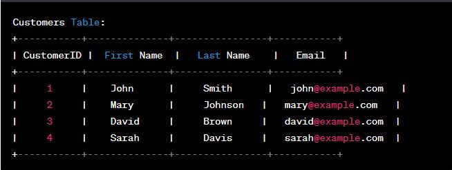 Consider two tables, “Customers” and “Orders“, with a common column “CustomerID“.